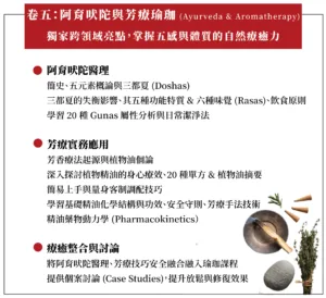 引導你辨識不同的身體特質(Dosha),並運用精油與自然療法,讓瑜珈課堂昇華為深層的療癒體驗
